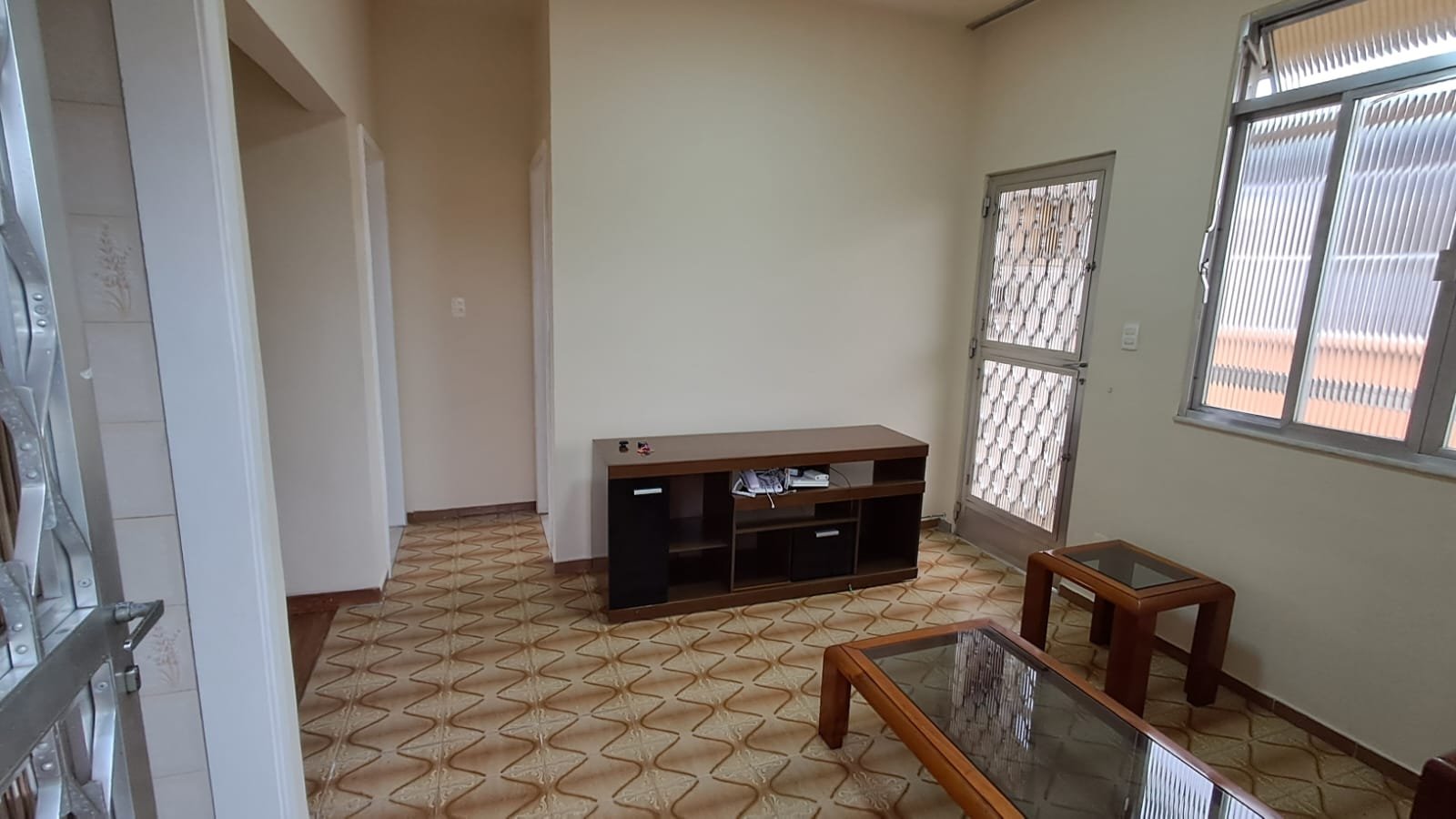 SALA SEMI-MOBILIADA COM RACK, MESAS DE CANTO E MESA CENTRAL,